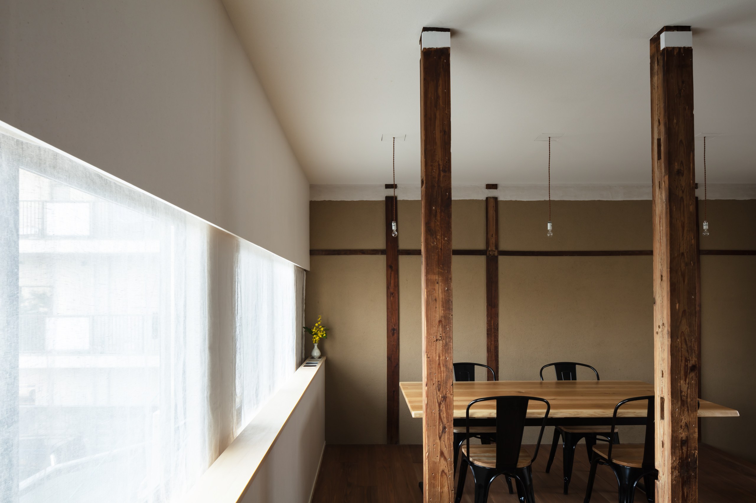 そして、窓辺には奈良の寒冷紗、床には吉野の杉を使って、奈良を醸し出した。