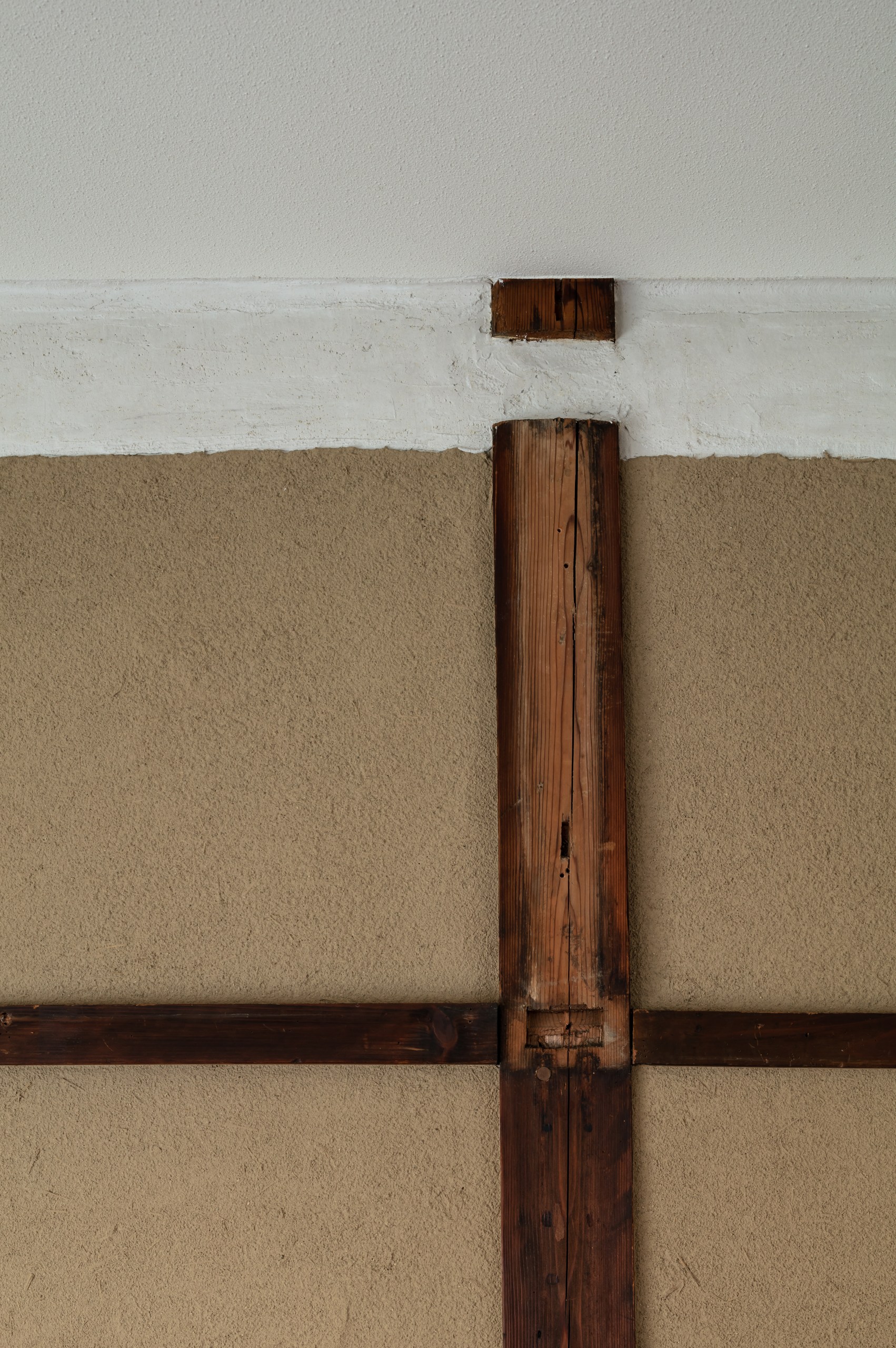 築年数を感じさせる2階部分は、土壁や真壁の柱、長押などが風情を醸し出していると同時に、長い年月を経た劣化も随所に見られた。