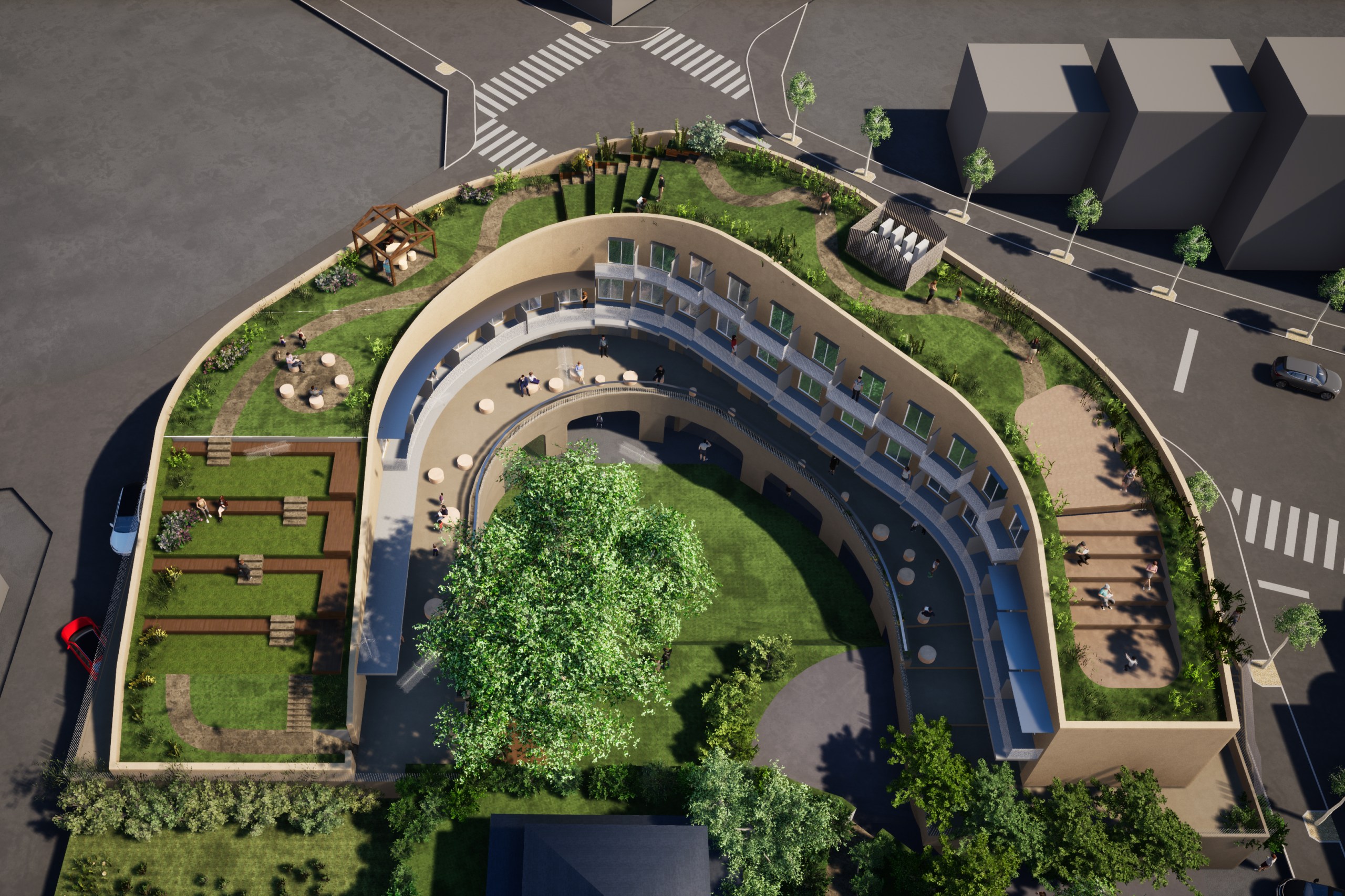 明後日の田園都市 2025 text 集合住宅プロジェクト ライフスタイルの多様化(共働き、在宅勤務、マイクロビジネス)やアフターコロナを見据えた集合住宅。 地面からせり上がる屋上を緑化し街区のグリーンベルトを完成させ、かつて農村であった地域の景観を継承。 緑地や住環境向上など「明日の田園都市」のコンセプトを参照しつつ、用途融合やシェアなど今日的なコンセプトも取り入れ、新たな郊外住居モデル「明後日の田園都市」を目指す。